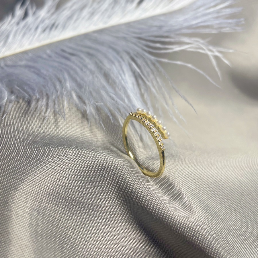 High-end Niche Light Luxury Design Women's Pearl Ring European and American Fashion Creative Gold-plated Zircon Adjustable Opening Ring