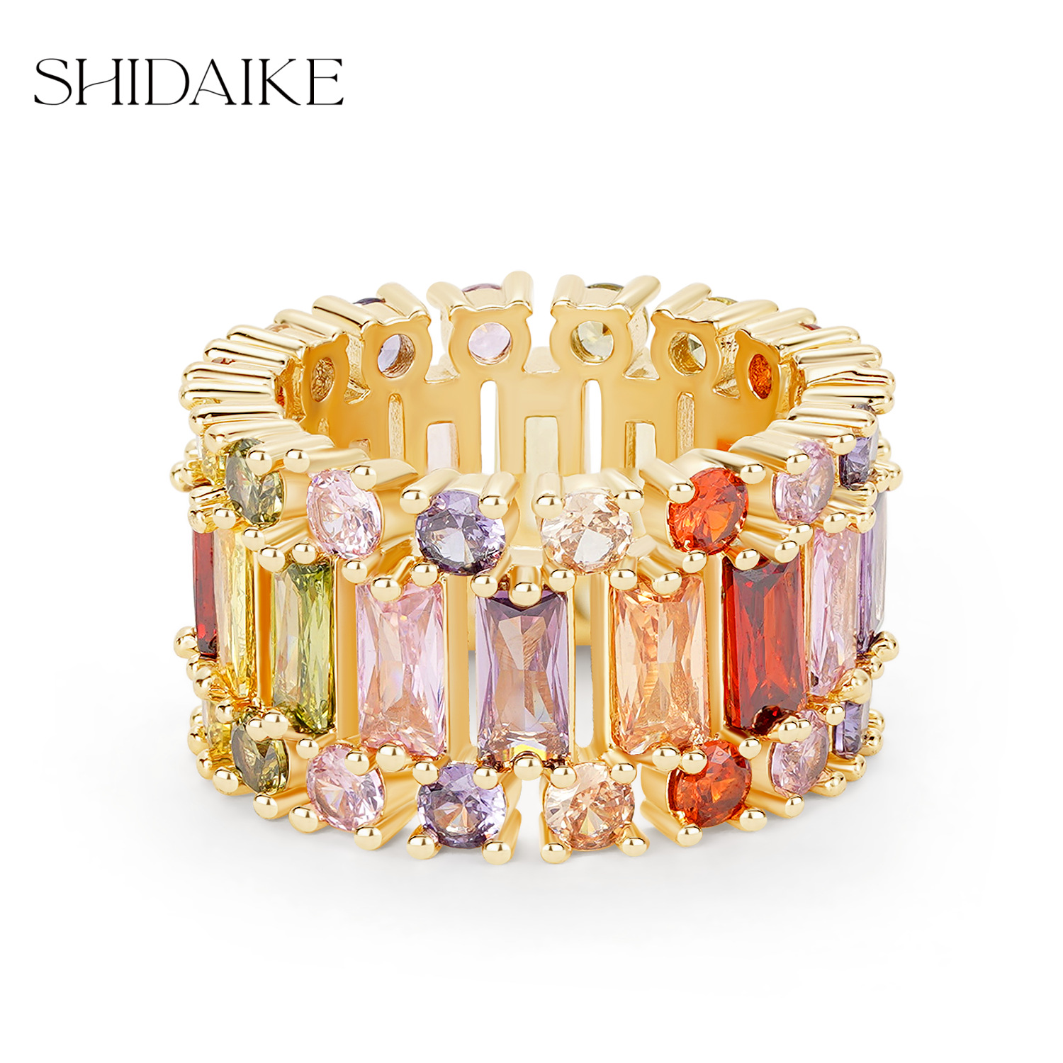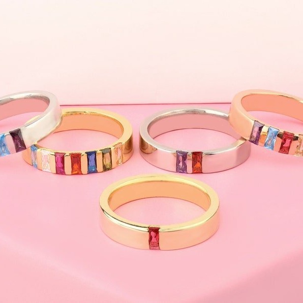 Colorful Zircon Rings Cross-Border Supply Wholesale Jewelry Fashion Simple Wish Ebay European and American Gold-Plated Rings