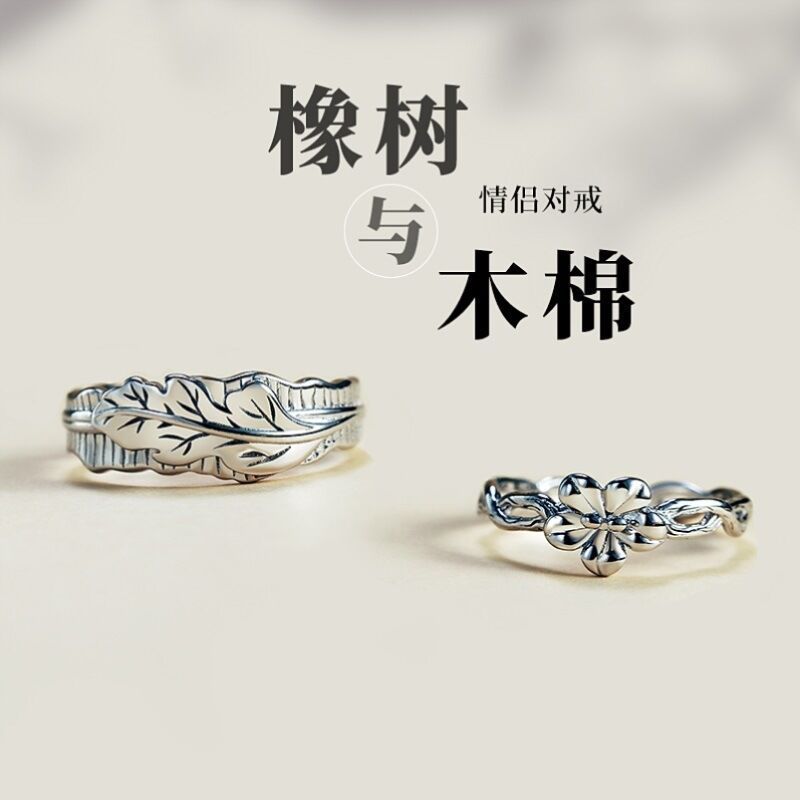 Korean Style Oak and Kapok Ring, a Pair of Artistic Design Rings, Adjustable Male and Female Couple Rings for Delivery