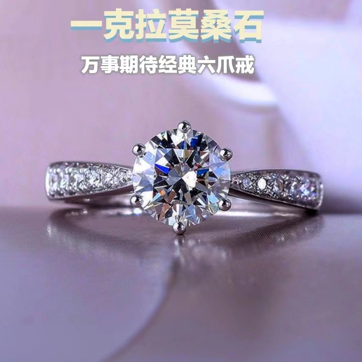 Tiktok Live Popular One-Carat Classic Six-Prong Open Ring Women's Fashion Versatile Imitation Moissanite Diamond Jewelry