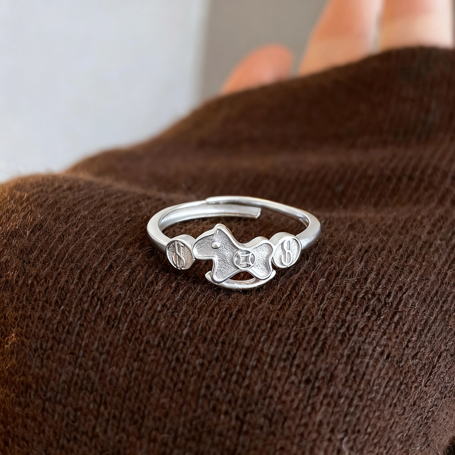 S925 Sterling Silver Pony Coin Ring, the Same Style as Little Red Book, Year of the Horse, Zodiac Year Ring, High-End and Versatile Index Finger Ring