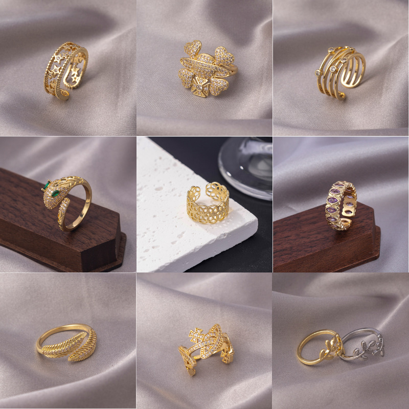 Ins Korean Style Star Zircon Ring Women's Korean Style Versatile Fashion Design Open Ring Index Finger Ring Accessories