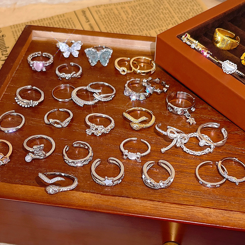 Vintage Personalized Geometric Zircon Ring Collection Accessible Luxury High-End Index Finger Ring Opening Adjustable Hand Jewelry