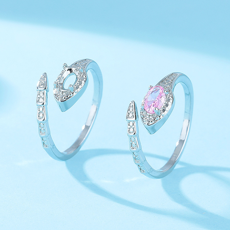 Shake voice live explosions small spirit snake-shaped empty support ring inlaid with huazi diamond crystal treasure oval 4*6M egg surface