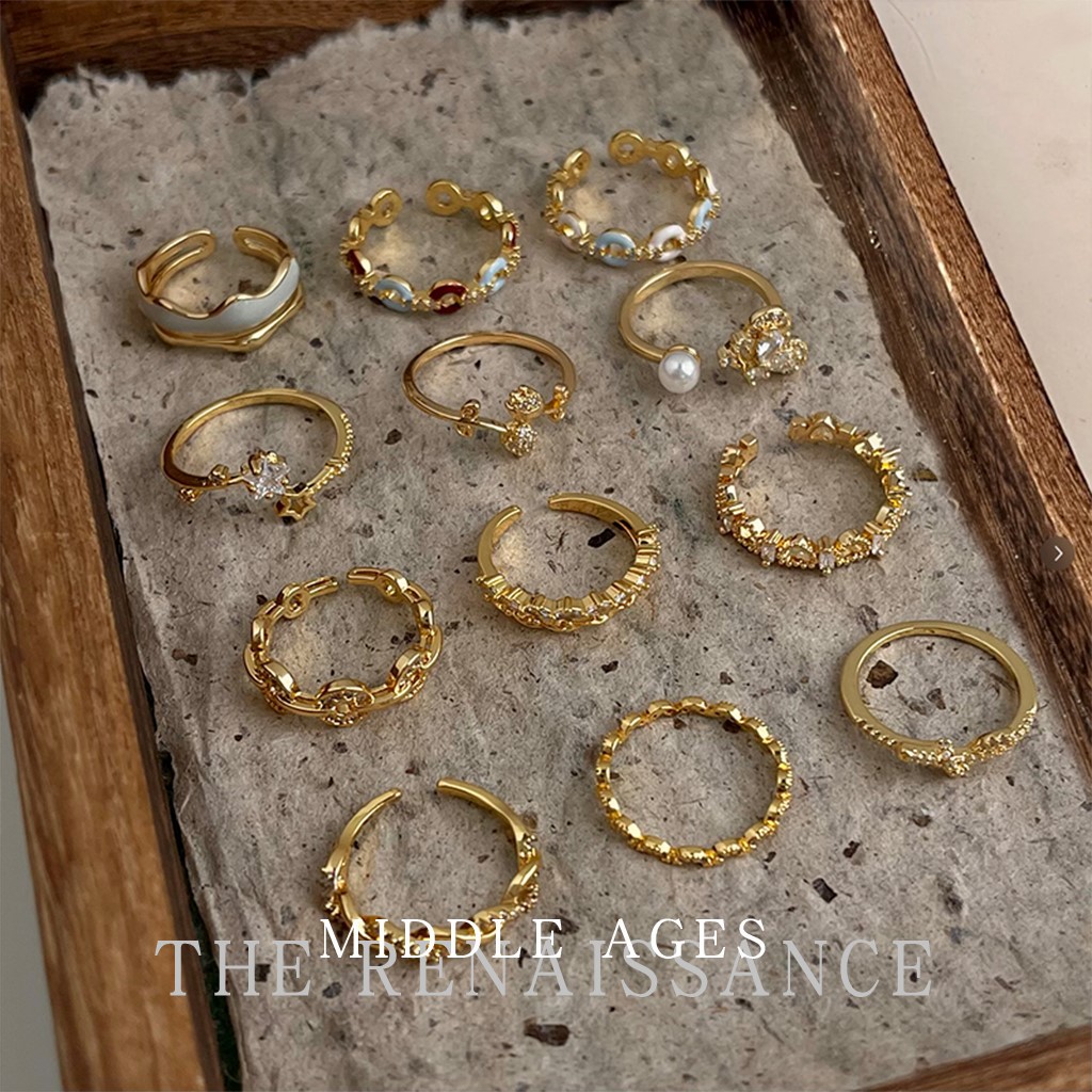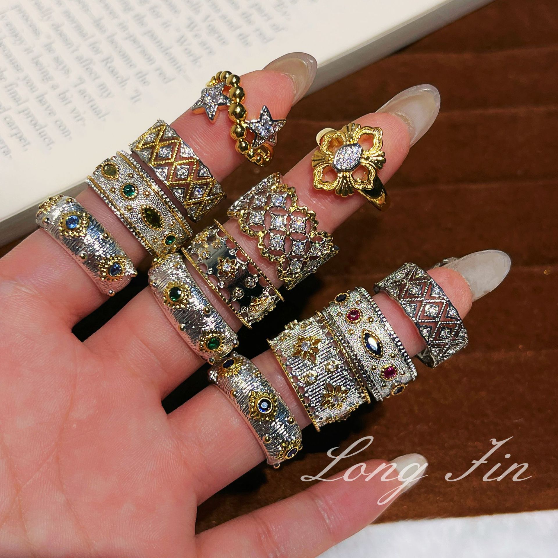 Vintage Sparkling Zircon Gold Open Ring Collection Retro Literary Fashion Accessible Luxury Style High-End Hand Jewelry