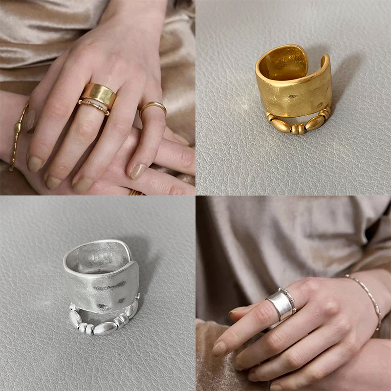 French Design Sense Double Layer Irregular Personality Adjustable Ring Wide Beaded Open Ring Earrings Necklace