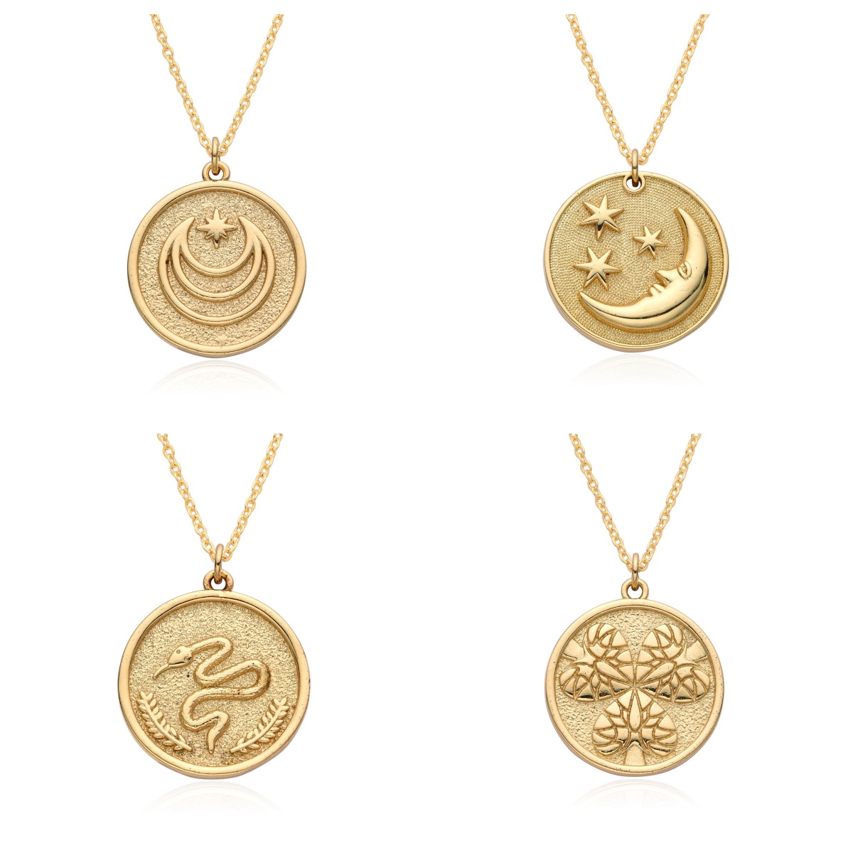 European and American popular fashion round coin pendant jewelry plated 18K gold pattern round coin necklace