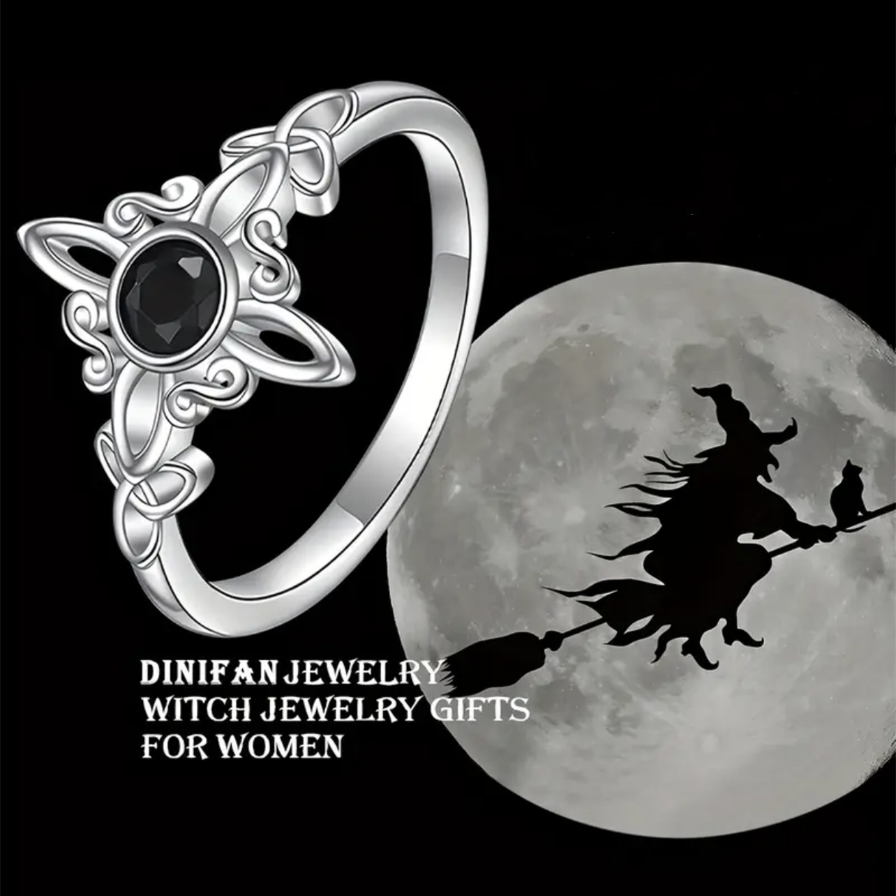 Cross-Border Export Amazon Temu Hot Black Zircon Magic Celtic Knot Ring Witch Decorative Jewelry