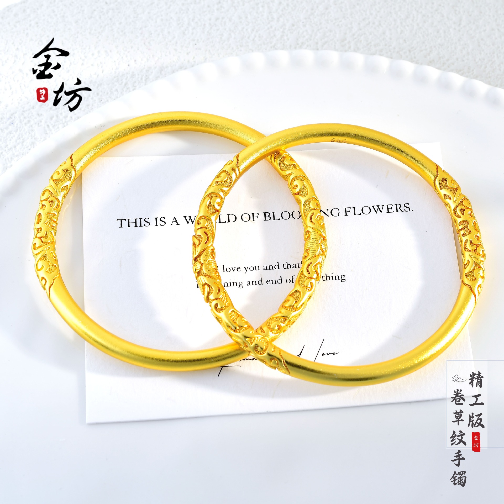 Ancient gold copper gold-plated grass pattern bracelet new Chinese style national style solid bracelet women's jewelry summer fashion all-match