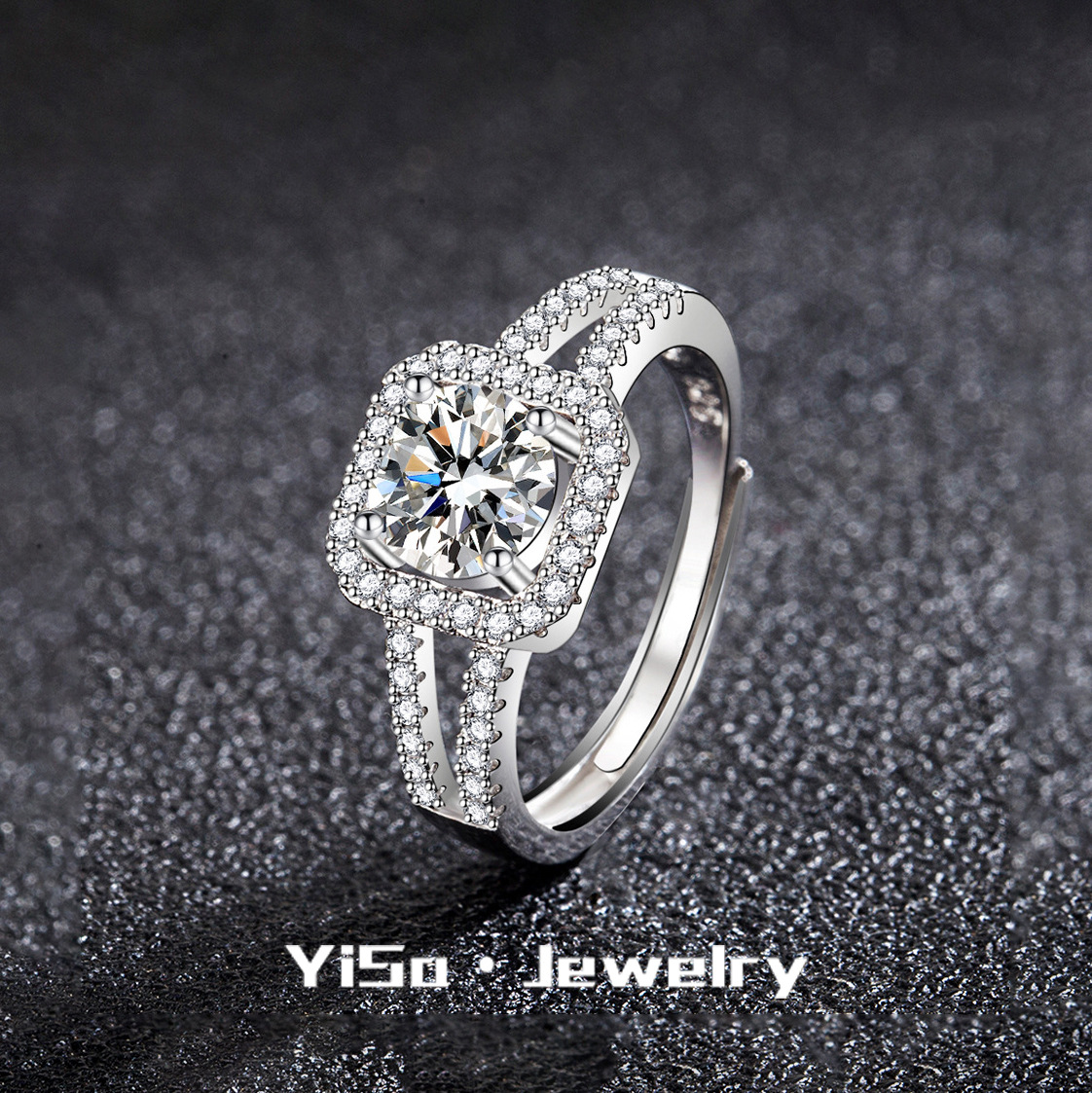 Princess Square Bag Double-layer Diamond Ring Cross-border Fashion Cold Style European and American Hollow Line Micro-inlay Moxan Diamond Ring for Women