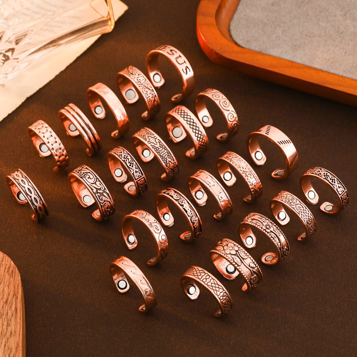 Amazon Cross-border Exclusive Luxury Fashion Red Copper Ring Plum Blossom Carved Magnet Ring Double Magnetic Couple Ring