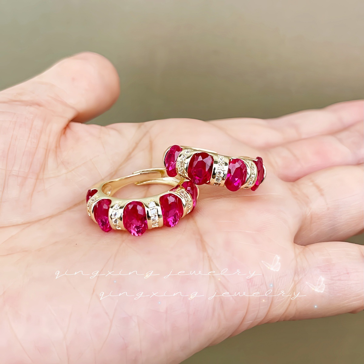 High-end Retro Synthetic Red Corundum Ring Fashion Modern Men's and Women's French Niche Design Loose Row Ring