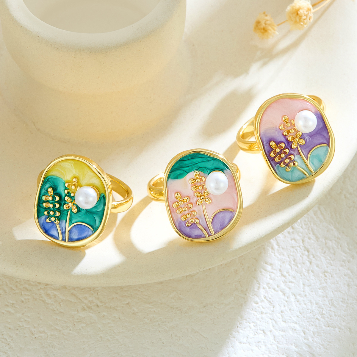 European and American Cross-Border Jewelry Fashion National Style Personalized Opening Adjustable Painted Oil Dripping Flower Copper Micro-Embedded Enamel Ring
