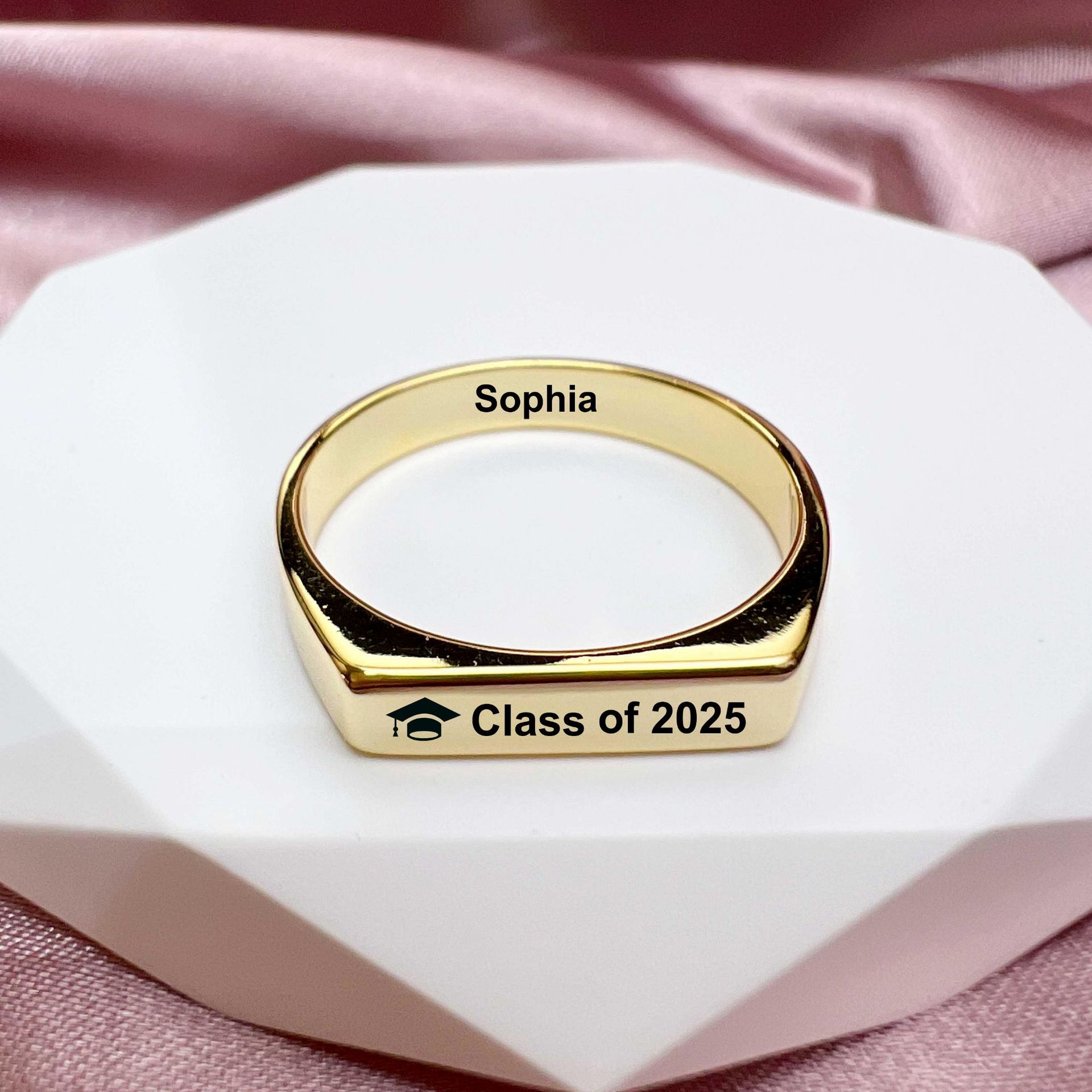 Europe and the United States cross-border rectangular couple ring pet ring graduation ring name lettering commemorative language personalized