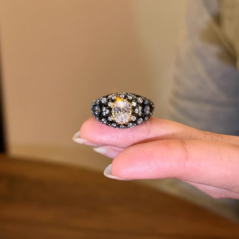 Black Oval Super Flash Diamond Ring Women's 2025 New Explosive Light Luxury High-end Sense Ring Niche Design Finger Ring