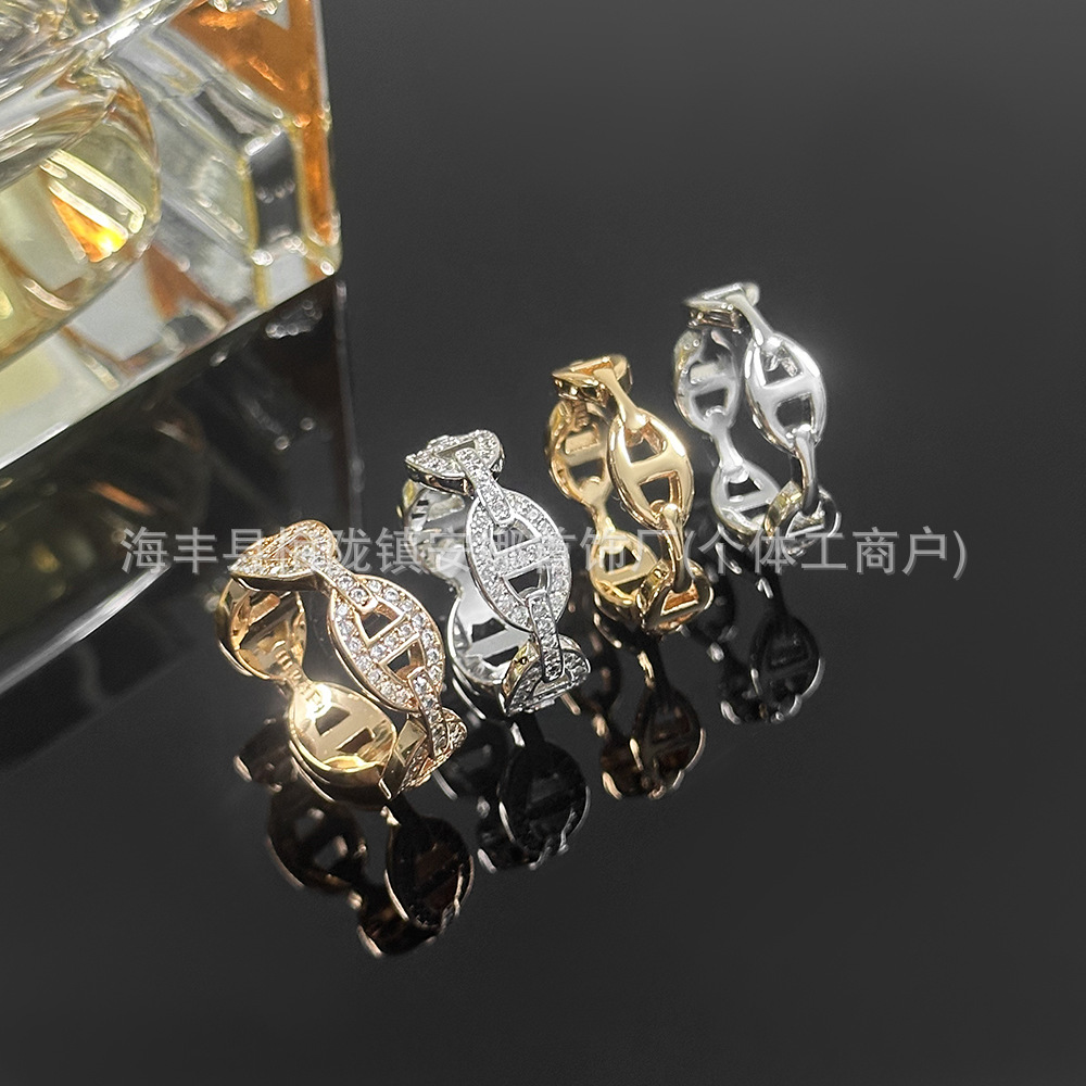 2025 High-Precision Version Aijia Pig Nose Full Diamond Ring Women's Ins Light Luxury Simple Advanced Photosensitive Surface H Ring