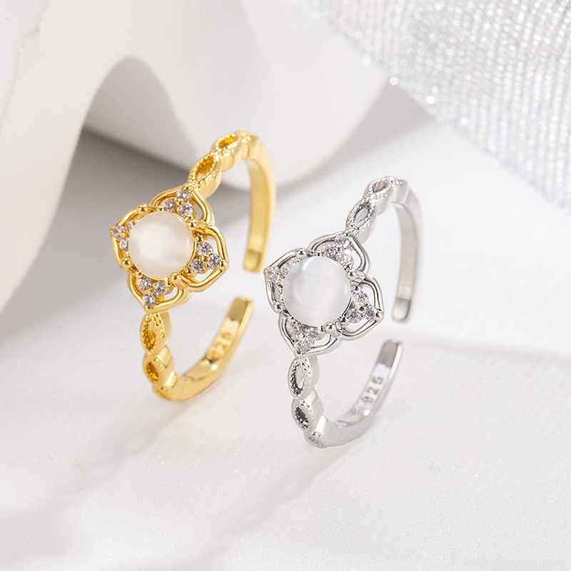 2024 French New Arrival Four-leaf Clover Light Luxury Shining All-match Retro Gentle Opalite Opening Ring