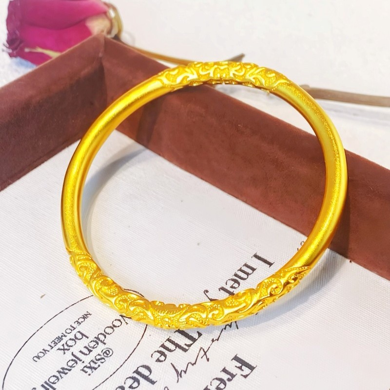 Gold-Plated Copper Bracelet with Scroll Pattern, Same Style as in Gold Stores, Uniform Color Inside and Out, Sand Gold Women's Light Luxury Fashion Plain Gold Bracelet, High Quality