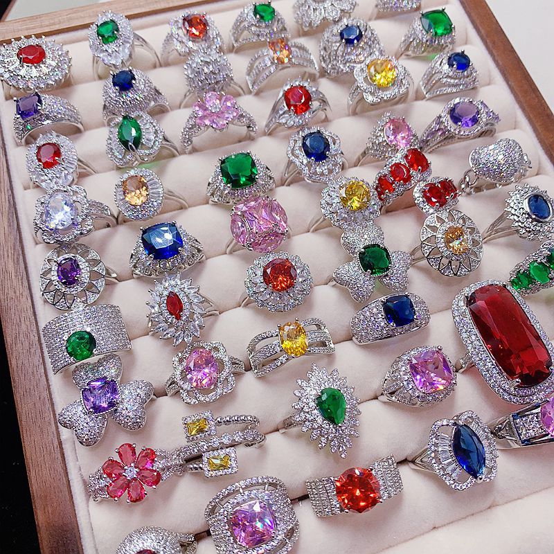 Micro-Paved Zircon Color-Preserving Good Color Treasure Ring Accessible Luxury Fashion High-End Colorful Zirconium Main Stone Index Finger Ring Ring Bracelet