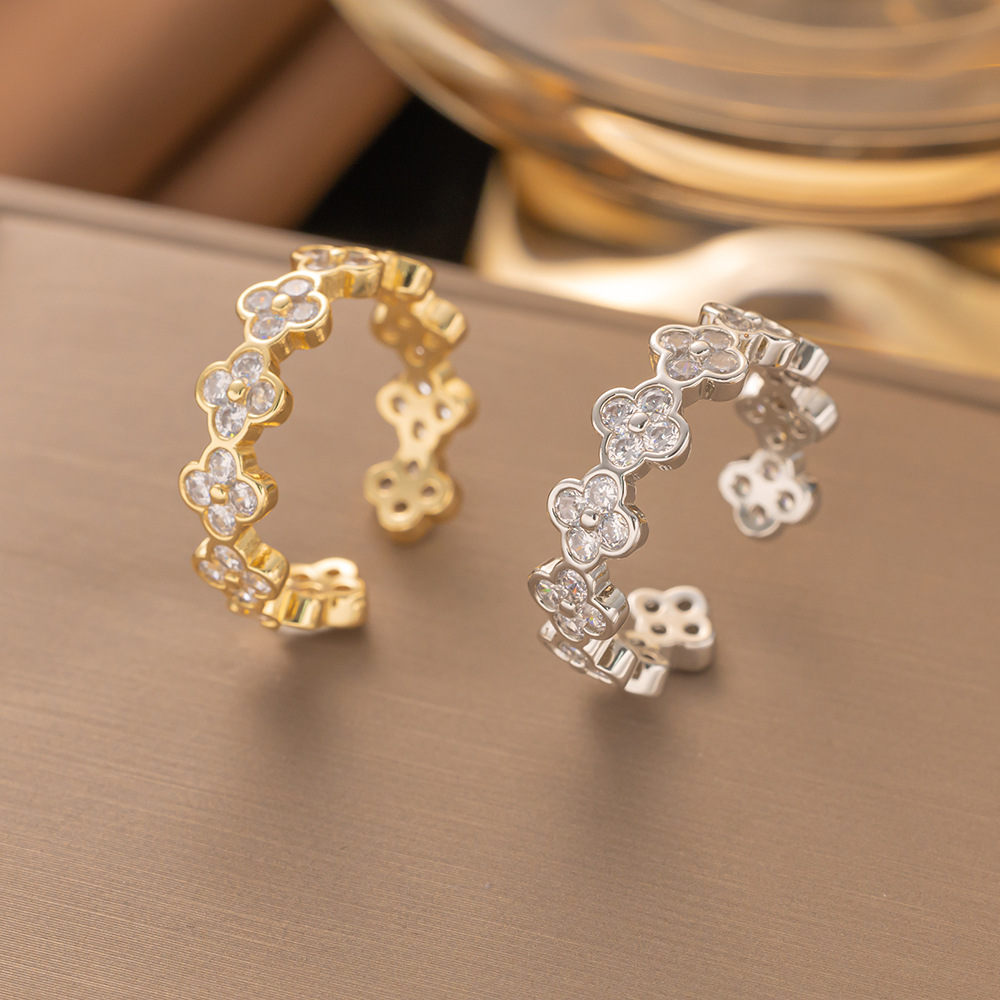 Gold Full Diamond Four-Leaf Clover Open Ring Women's Design Niche 2025 New Hot Style Accessible Luxury High-End Index Finger Ring