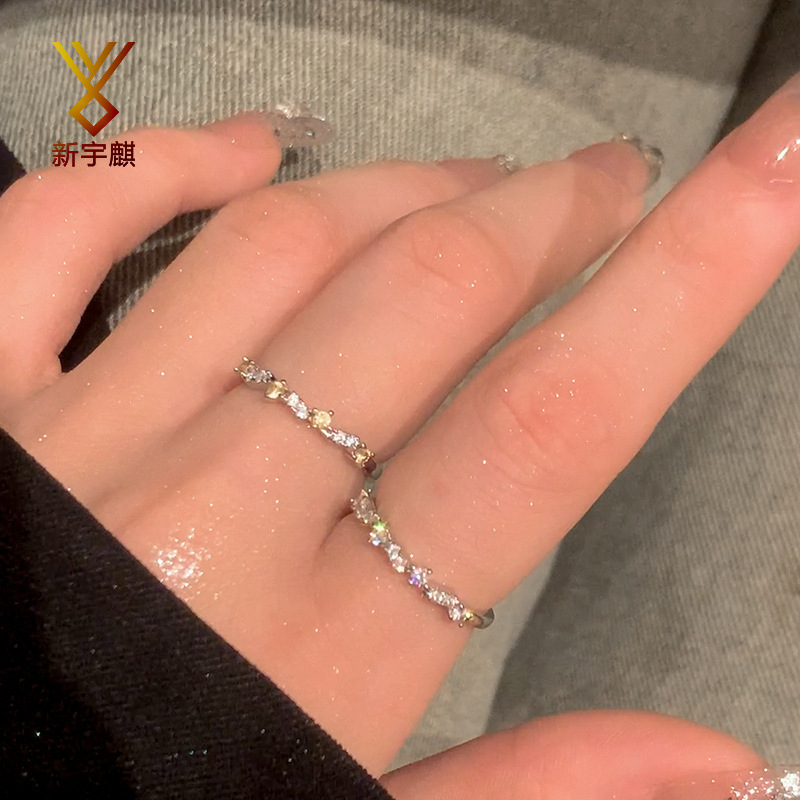Star Zircon Ring for Women, Accessible Luxury Niche Design, High-End, Versatile Hand Jewelry, Open Adjustable Ring, Index Finger Ring