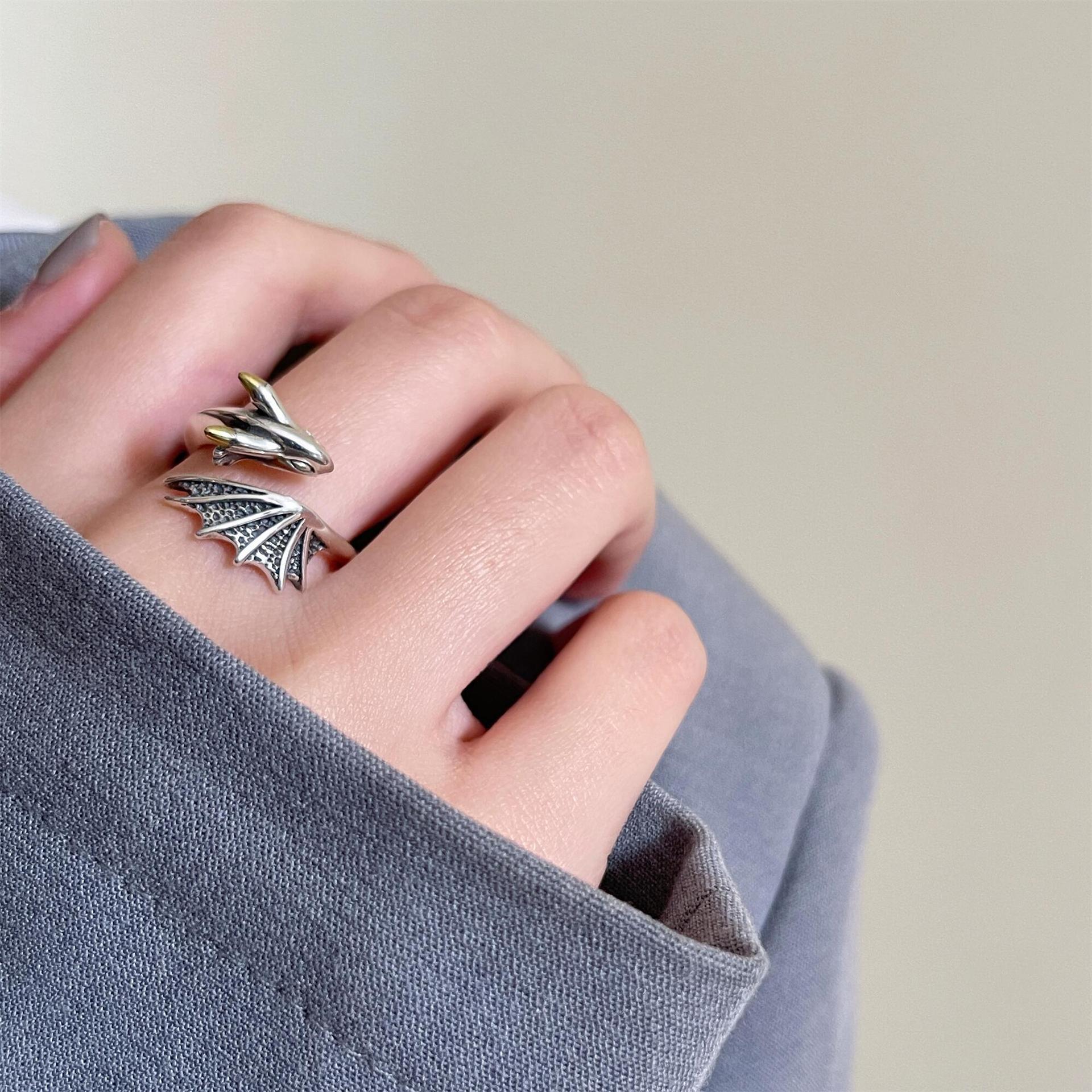 Small Dragon Open Ring Women's Retro Niche Design Sense Finger Ring Japanese and Korean-style Personality Hip-hop Cold Wind Ring Men