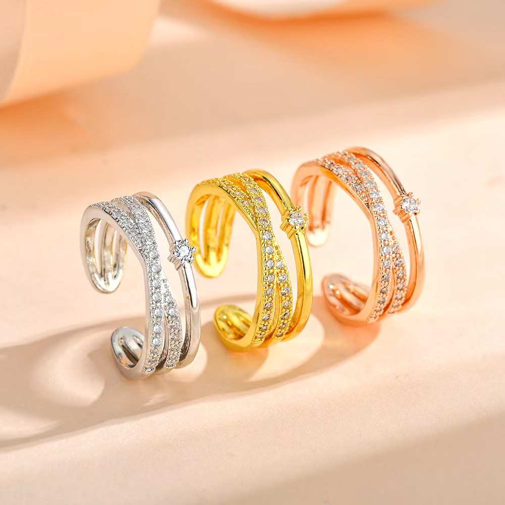 Cross-Border Cross Ring Women's Fashion Personality Niche Design Three-Ring Index Finger Ring Opening Adjustable Versatile Ring