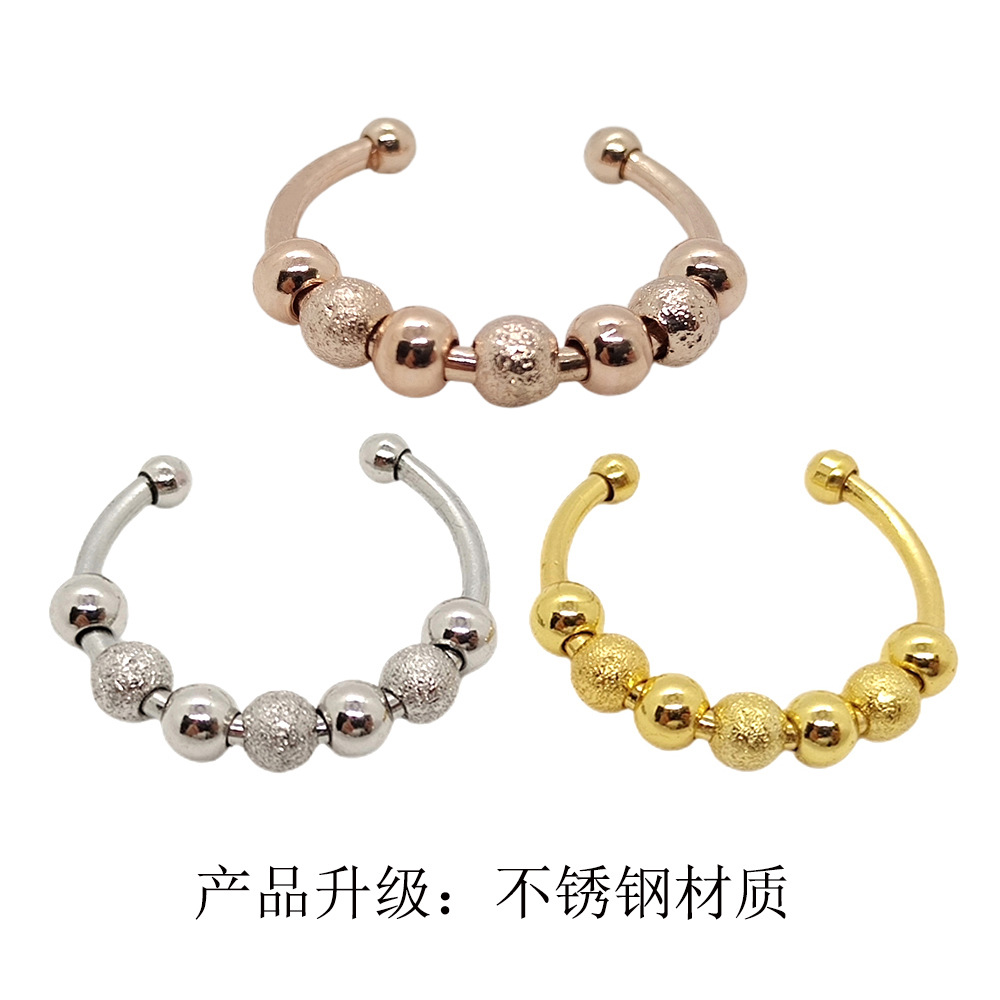 Cross-border New Amazon Explosions Rotatable Bead Ring Anxiety Decompression Opening Stainless Steel Frosted Ring