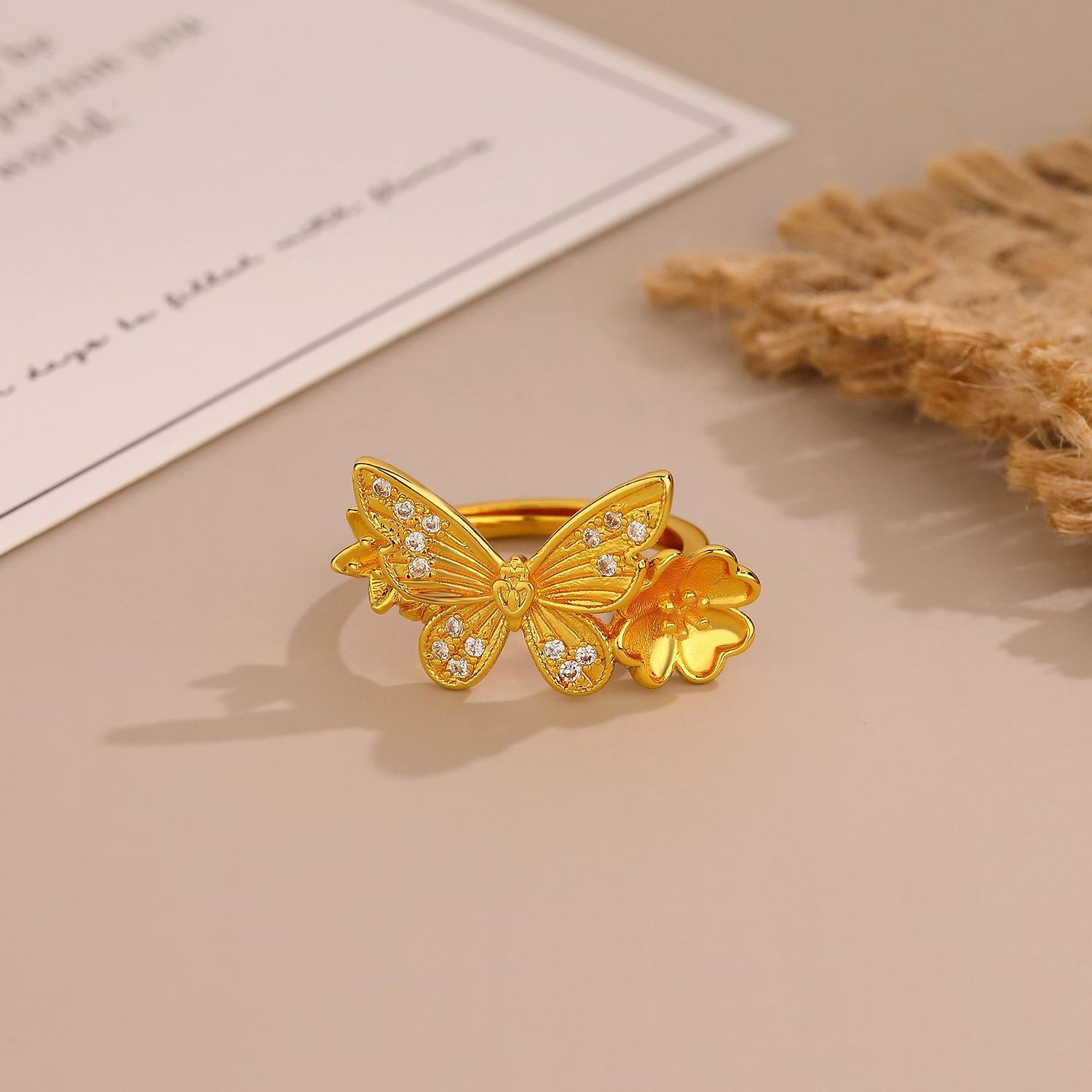 Butterfly Flower Ring Women's National Style New Chinese Style Flower-attracting Butterfly Fashion Niche Design Light Luxury All-match Open Finger Ring