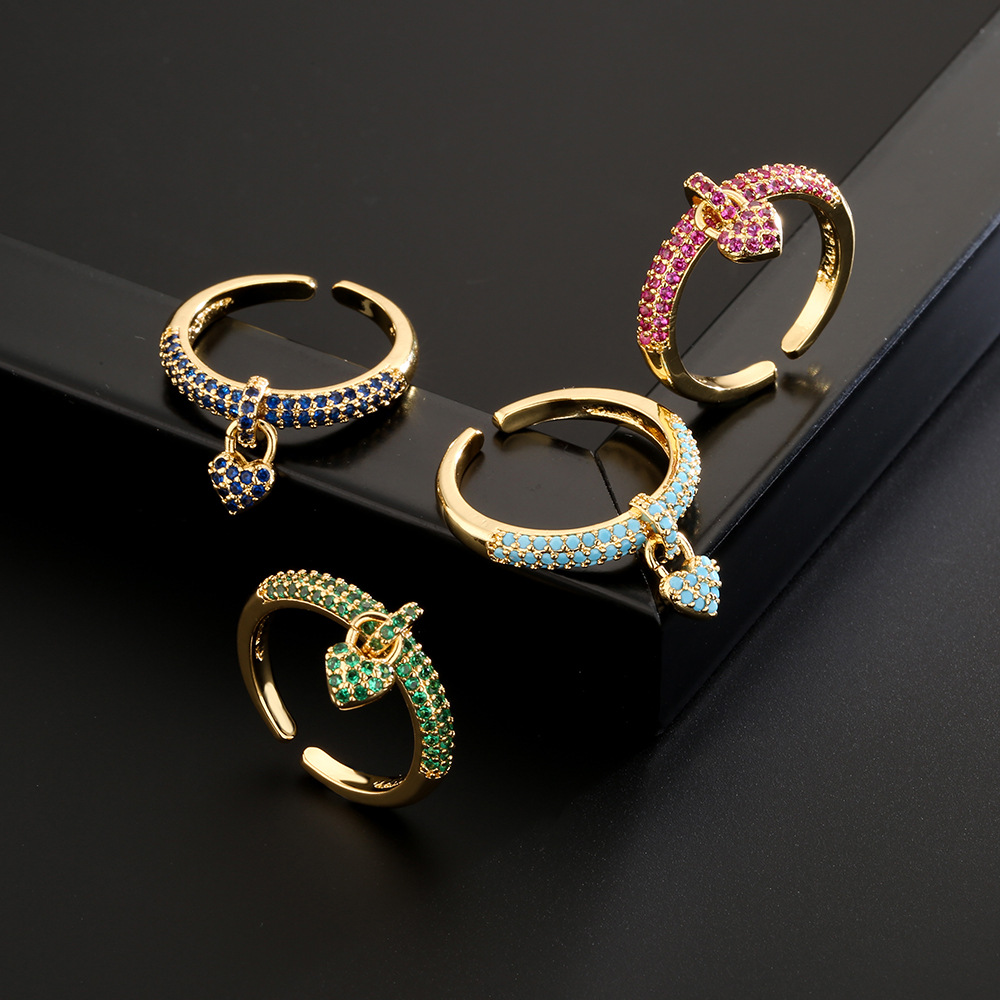 Aogu Copper 18K Gold Micro-Paved Zircon Heart Open Ring Women's New Fashion Retro Ring Cross-Border Supply