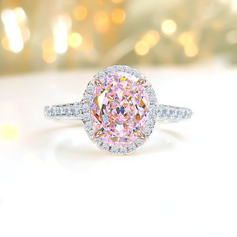 Fashion Accessible Luxury Pink Egg-Shaped Diamond Ring Women's Classic Luxury Full Diamond Dove Egg Moissanite Diamond Ring Proposal Ring