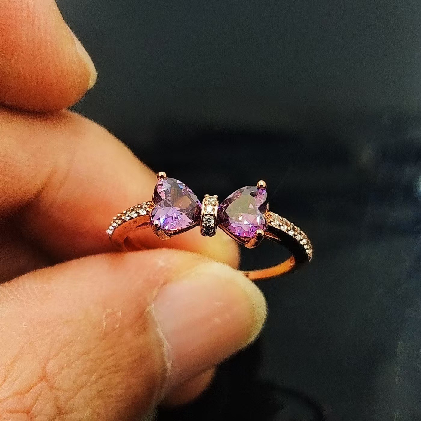 Live Explosions High Carbon Diamond Double Love Bow Open Ring Women's Ins Personalized All-match Fashion Colorful Zirconium Index Finger