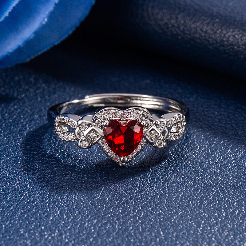 Light luxury fashion love zircon ring ladies cross mirror explosion red heart-shaped wedding ring opening adjustable jewelry wholesale
