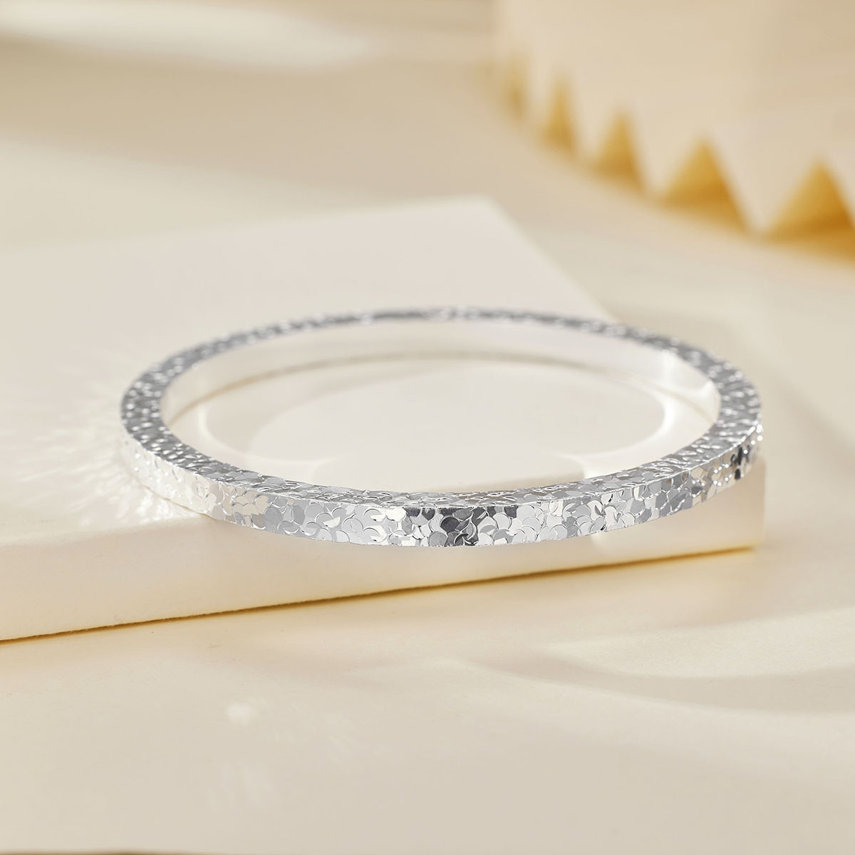 Silver Wide Three-Sided Crushed Ice Bracelet for Women, Light Luxury High-End Bracelet, Elegant Gift for Girlfriend, Wife, or Best Friend