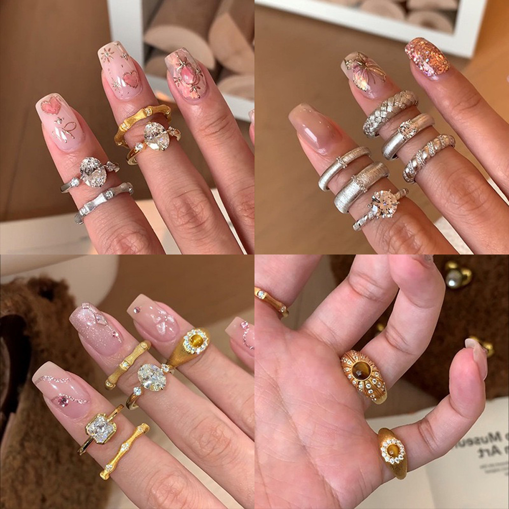 Korean Fashion Personalized Combination Ring for Women Ins Cold Style Niche Design Joint Ring Black Zircon Index Finger Tail Ring