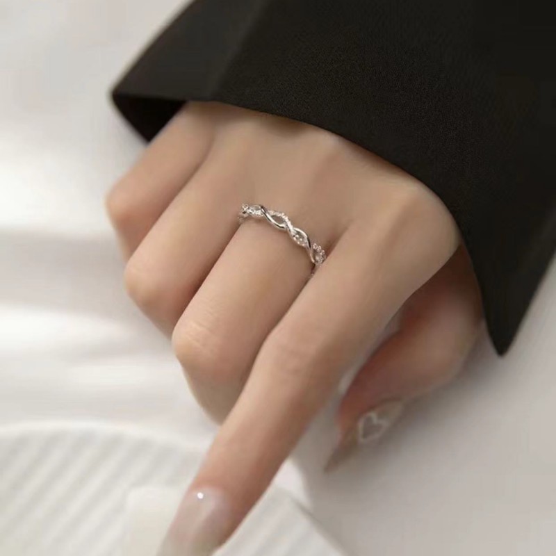 Cross-Border Supply Hollow Twist Cross Wave Diamond Ring Feminine Light Luxury Sweet Twisted Rope Ring