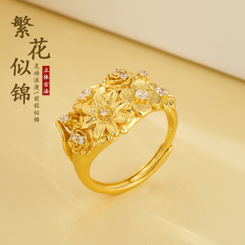 2025 New Chinese Style Flower Ring Women's Light Luxury High-end Retro Ethnic Style Elegant Ring