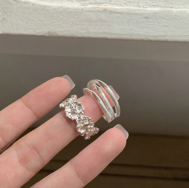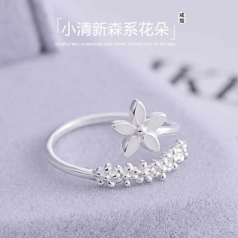 Japanese and Korean Style Fresh Flower Ring Women's Light Luxury Niche Design Mori Style Open Ring Daily Elegant All-match Bracelet