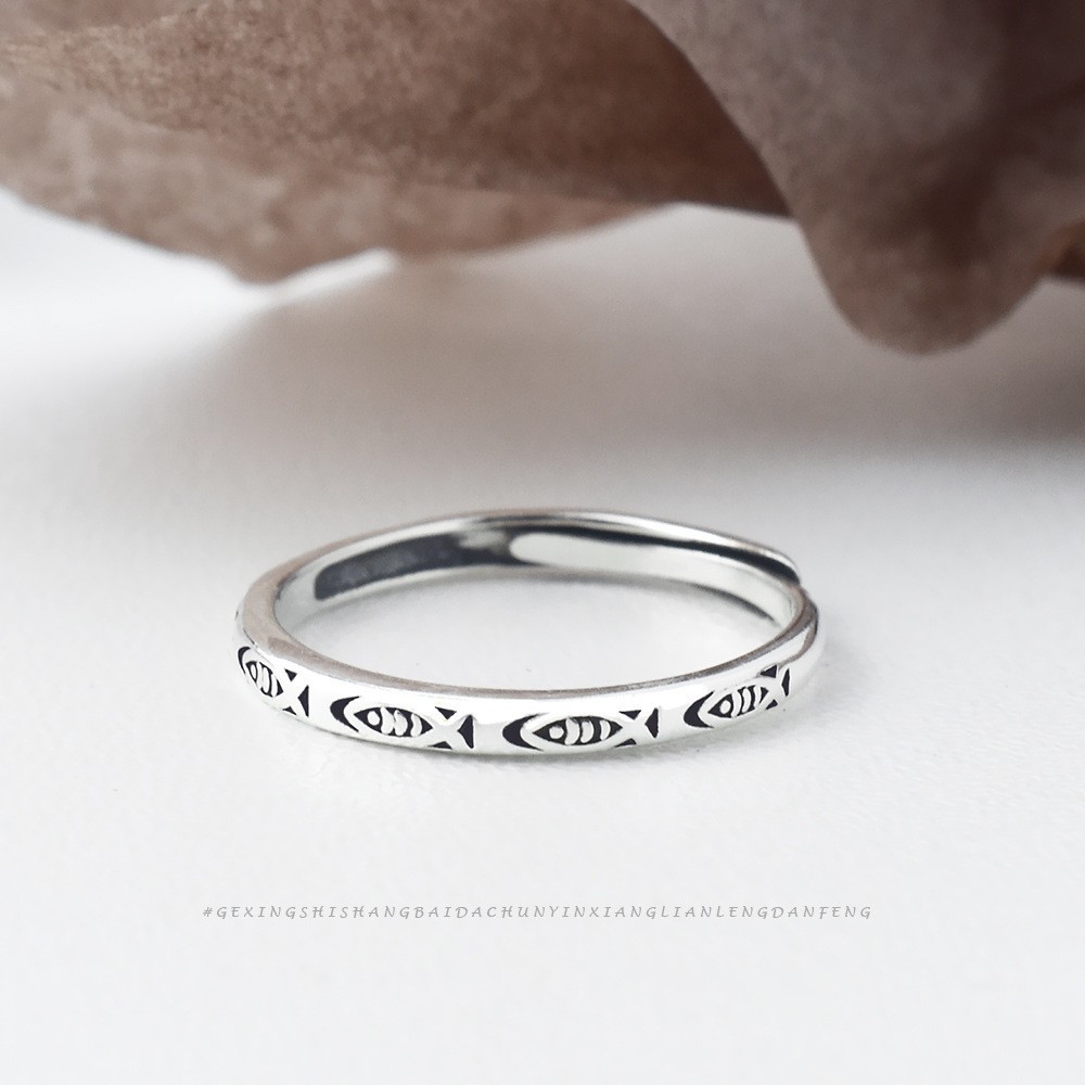 Vintage Totem Small Fish Ring Women's Fashionable Simple Open Ring Trendy Men's and Women's Fashionable Distinctive Koi Finger Ring