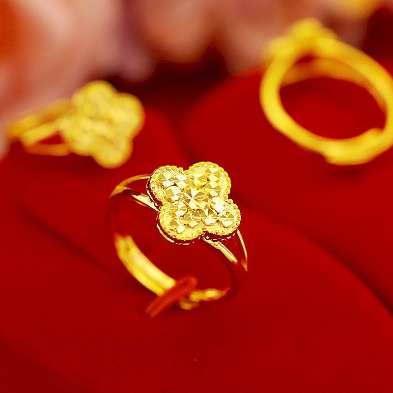 Imitation Vietnamese Sand Gold Four-Leaf Flower Diamond Ring Fashionable Women's Imitation Brass Gold-Plated Lucky Flower Open Ring