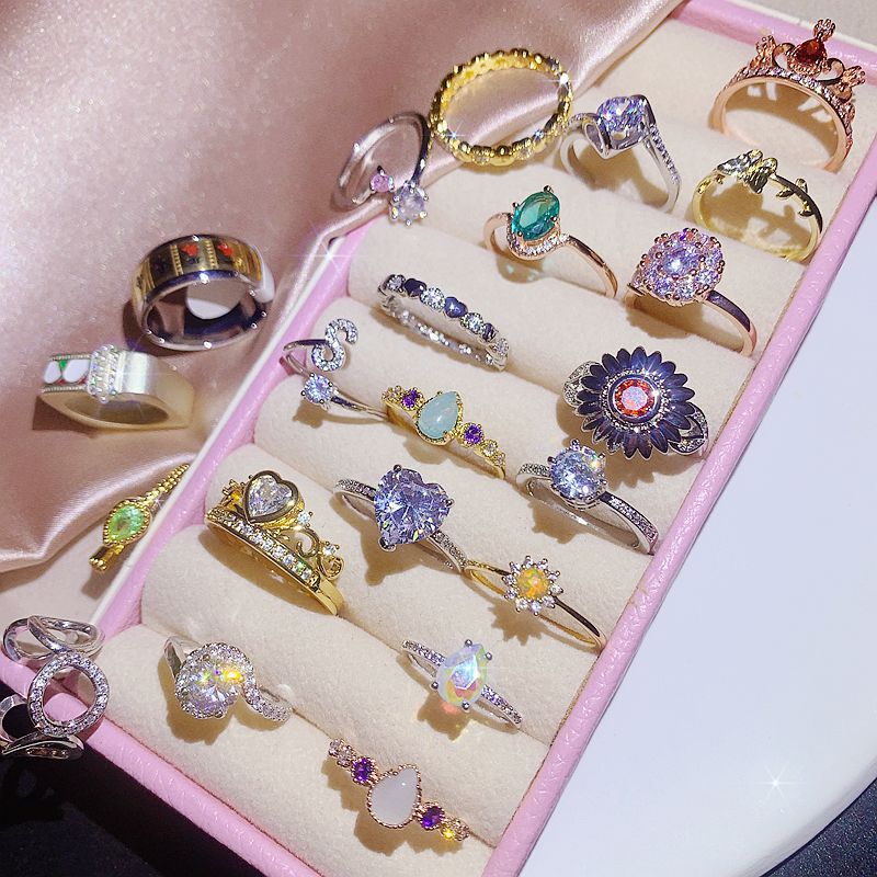 Japanese and Korean Style Zircon Ring Women's Ins Same Style Cold Style Micro-inlaid Light Luxury High-end Feeling Middle Ancient Open Ring