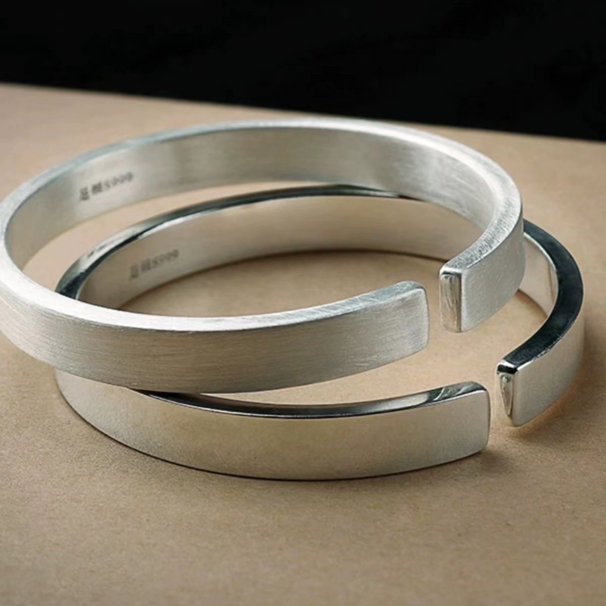 White copper silver plated bracelet ladies men silver smooth brushed snowflake handmade opening young jewelry wholesale