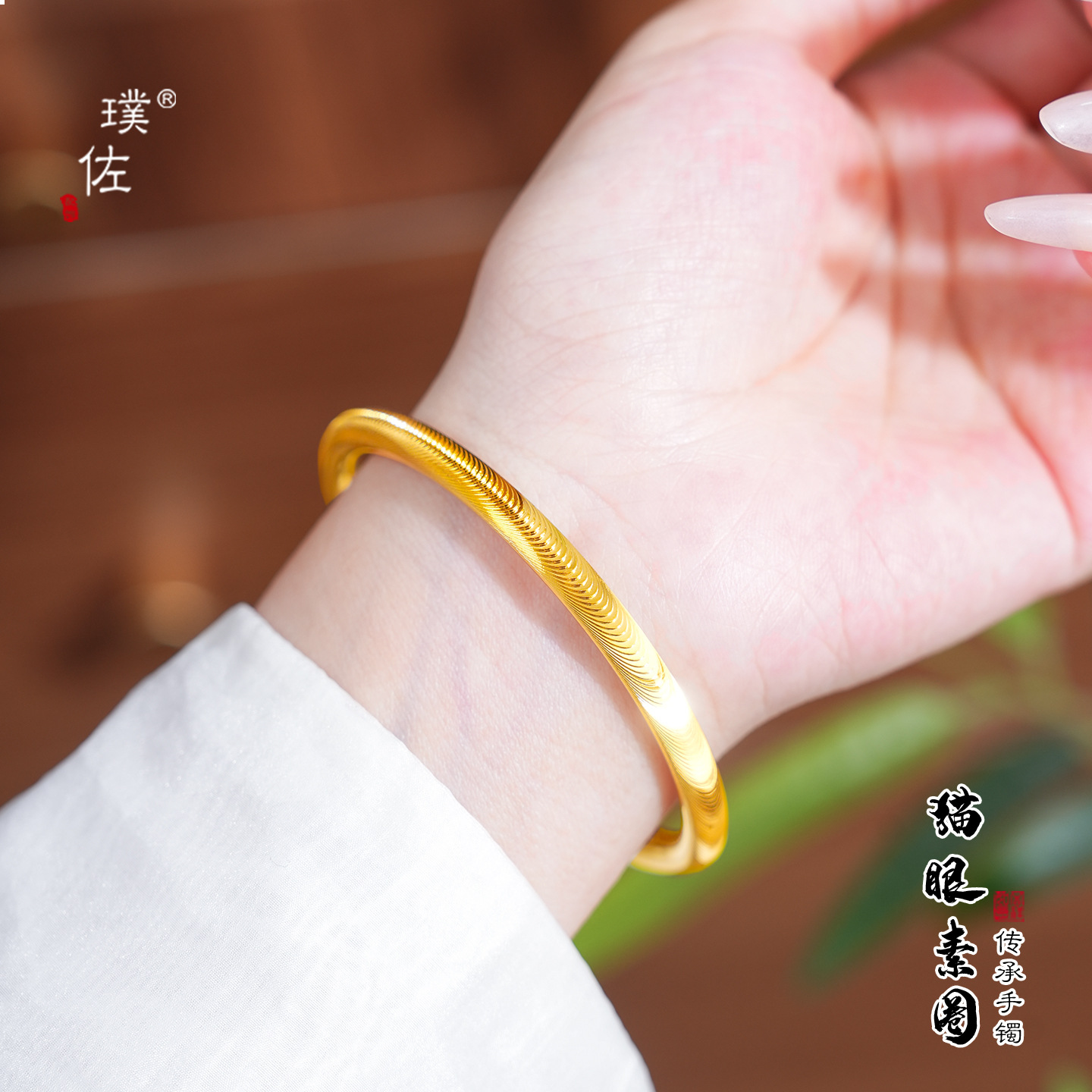 Puzuo Gold Store's Same Style 24K Bright Gold Sparkling 5mm Cat's Eye Bracelet Accessible Luxury High-End Versatile Plain Ring Bracelet