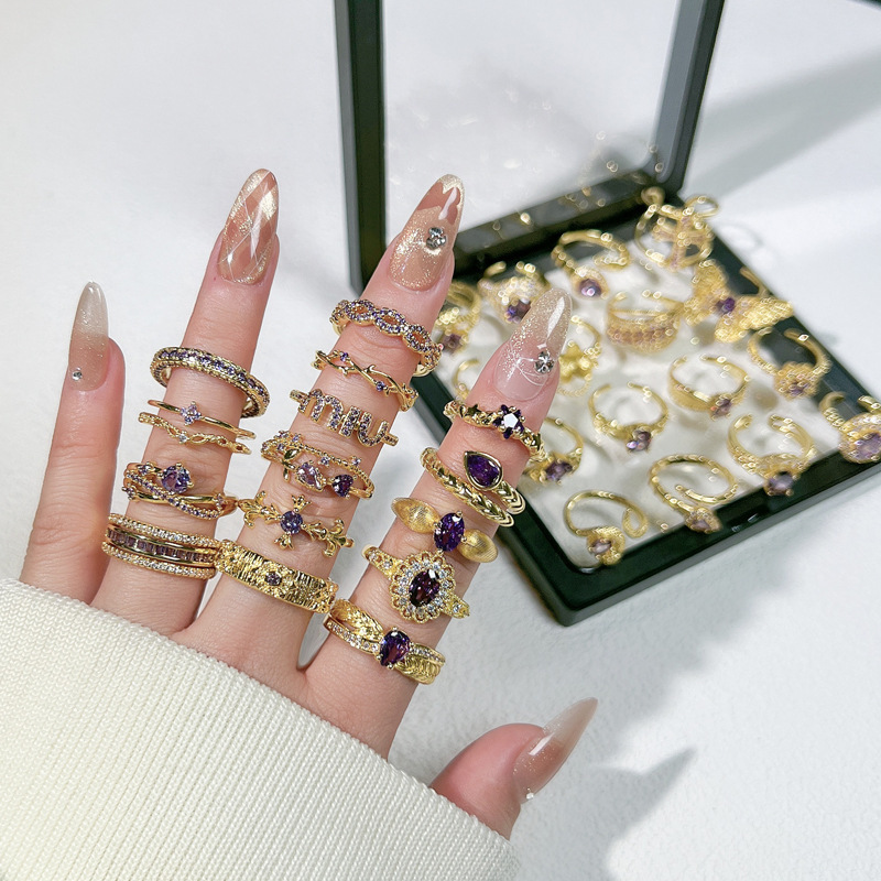 Purple Fire Light Luxury Exquisite Cross-border Super Fairy Sweet Cool Purple Diamond Ring Women's Nine Niche Retro Snake Geometric Ring Tide