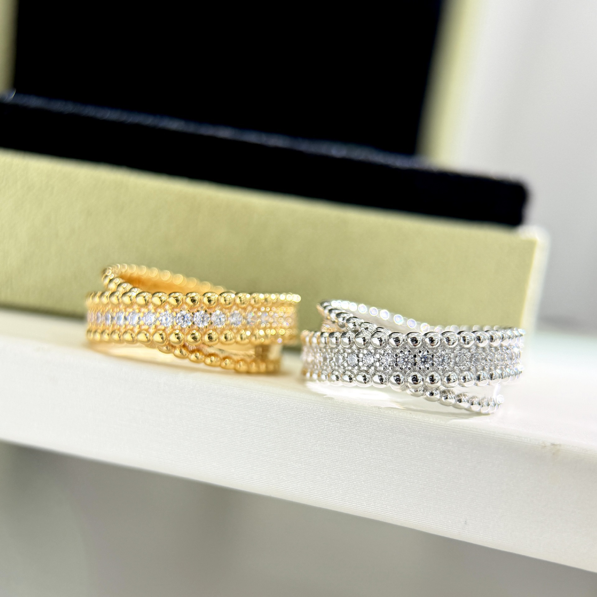 Seiko Version Twist Double Ring Cross Diamond Ring European and American Fashion Light Luxury Two-In-One Bead Row Diamond Ring