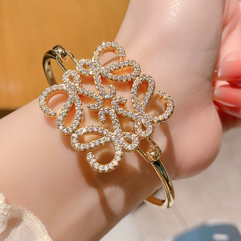 Luojia 2024 New Bracelet Hollow Full Diamond Letter Earrings Women's Retro Bracelet Bracelet Environmental Protection Copper Jewelry Wholesale