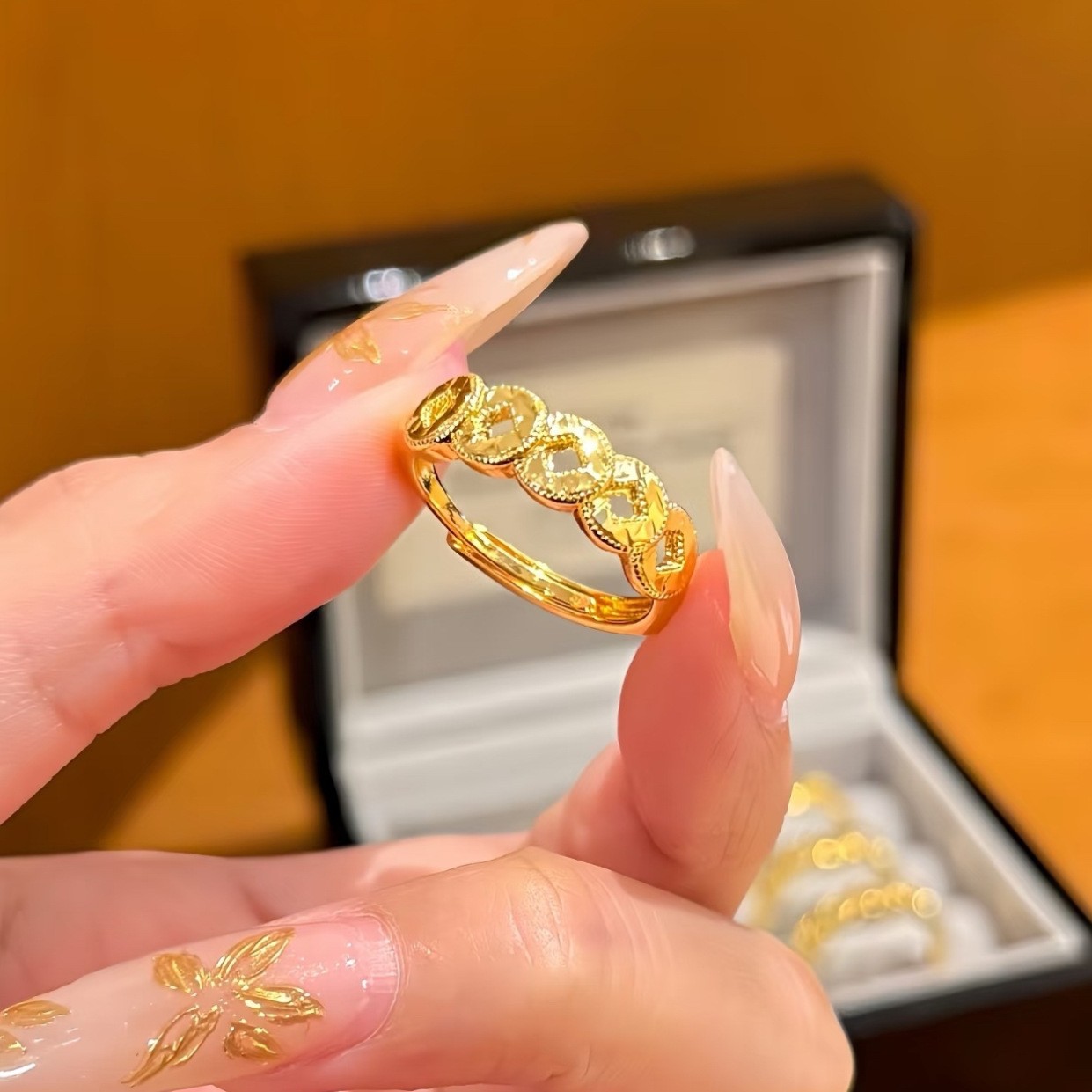 New Ice Ice Five Emperors Coin Ring for Women Chinese Style Fashion All-match Retro Opening Adjustable Light Luxury High-end Sense