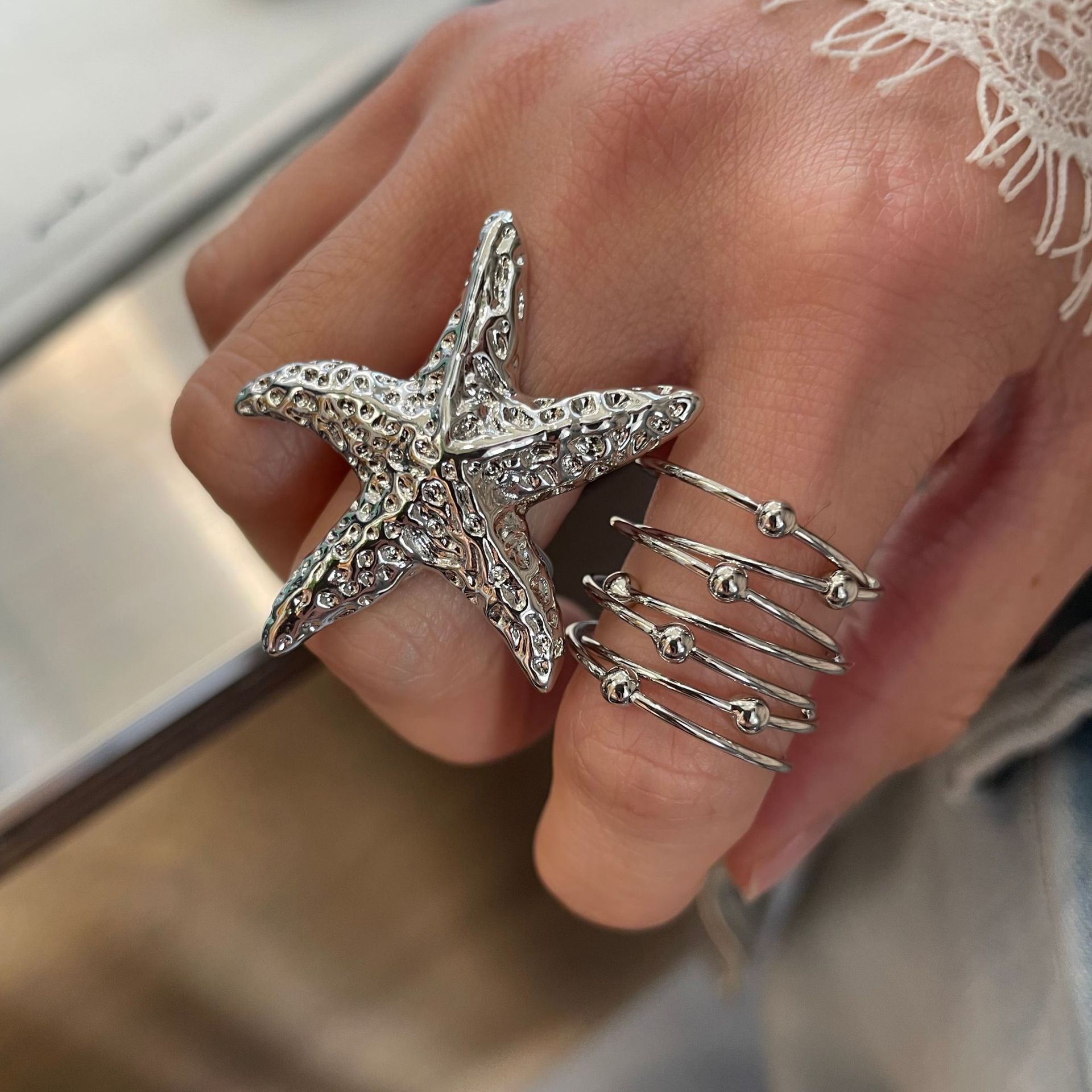 Korean Style Circle Multi-layer Winding Ring Fashionable Niche Simple All-match Starfish Stacked Wear Ins Style Index Finger Ring