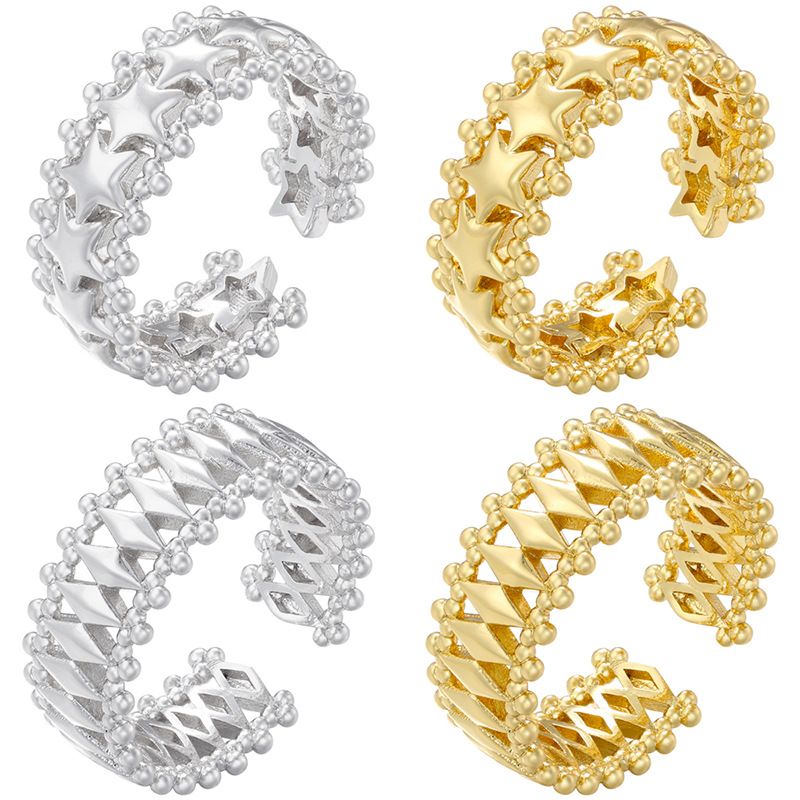 High-grade light luxury glossy five-pointed star diamond ring open adjustable star hollow ring VJ463-464