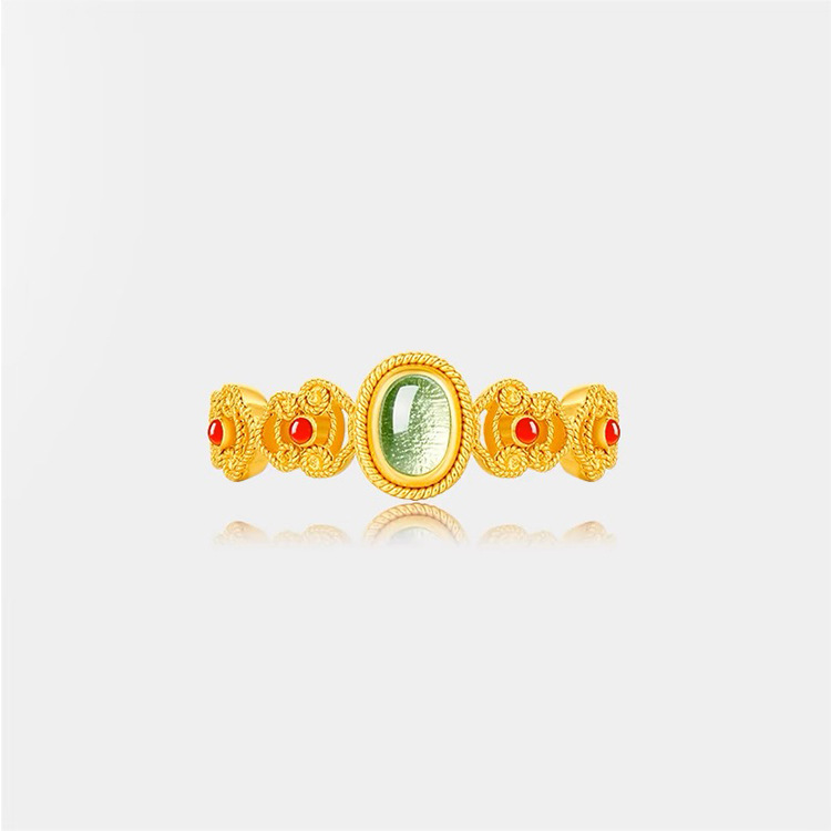 Gold-plated Filament Fenghua Wangchun Water Olivine Zircon Ring 2024 New Entry Luxury Niche Design Sense Ring